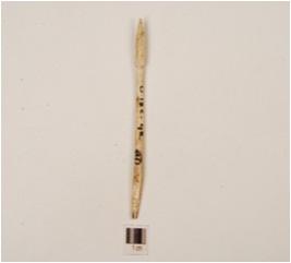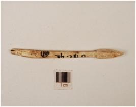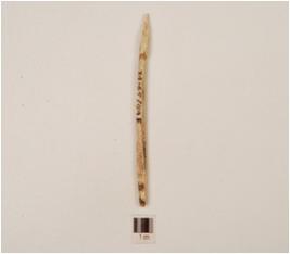 | Description / विवरण | A bone point, one end is pointed and head is prominent, surface is smooth and irregular section. |
