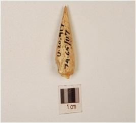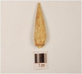 | Description / विवरण | A bone point, one end is pointed and broken head, surface is smooth and irregular section. |
