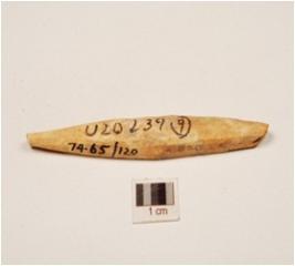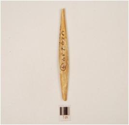 | Description / विवरण | A bone point, one end is pointed and irregular section. |