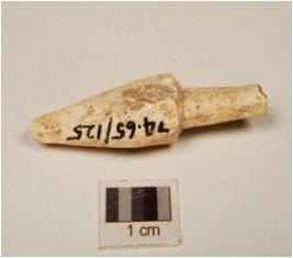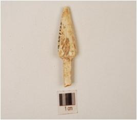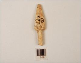 | Description / विवरण | A bone point, one end is pointed and head is prominent, cracks on surface and irregular section. |