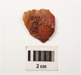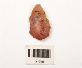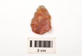 | Description / विवरण | A scraper made on chert, use wear marks on cutting edges, prominent bulb on vantral side, smooth surface. |