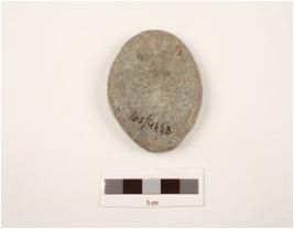 | Description / विवरण | Basalt anviel, circular-flat shape, smooth surface and circular depression on both surface in middle. |