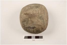| Description / विवरण | Basalt rubbering stone, square shape, partly broken, rough surface and smooth rubbing marks on surface. |