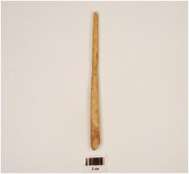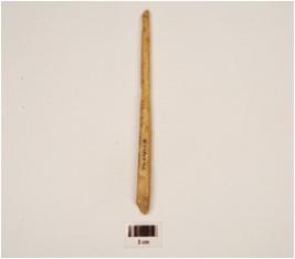 | Description / विवरण | A bone point, both ends are broken, one end is broad from bottom, surface is smooth and irregular section. |