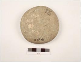 | Description / विवरण | Basalt rubbing stone, oval-flat shape and rubbing marks on both surface. |