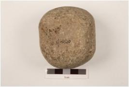 | Description / विवरण | Basalt rubbing stone, spherical shape, rough surface and smooth rubbing marks on surface. |