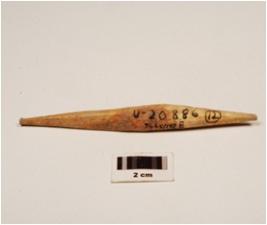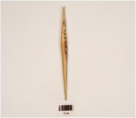 | Description / विवरण | A bone point, pointed ends, surface is smooth and irregular section. |