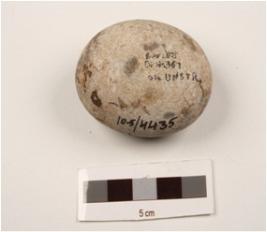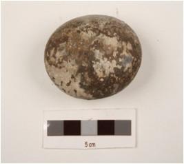 | Description / विवरण | A basalt pebble, oval shape and smooth surface. |