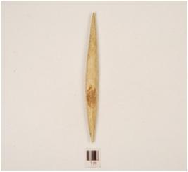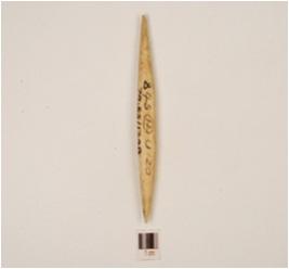 | Description / विवरण | A bone point, pointed ends, surface is smooth and irregular section. |