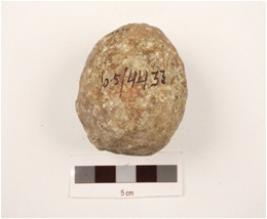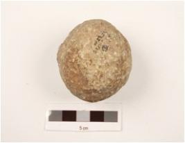 | Description / विवरण | Basalt ball, spherical shape, rough surface and packing marks on surface. |