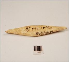 | Description / विवरण | A bone point, one end is pointed and other tip is broken and irregular section. |