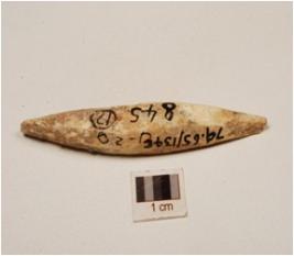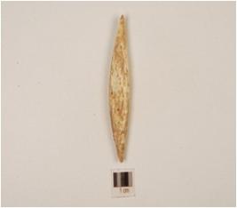 | Description / विवरण | A bone point, pointed ends one tip is broken, surface is rough and irregular sction. |