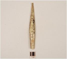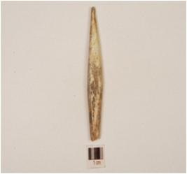 | Description / विवरण | A bone point, one end is pointed and other is broken, surface is smooth and irregular section. |