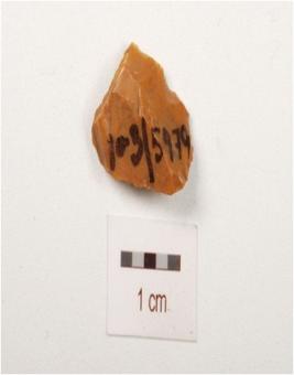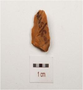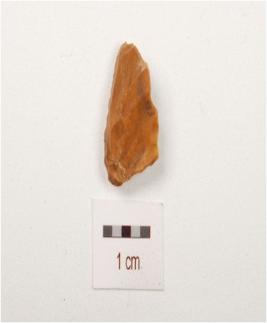 | Description / विवरण | A flake made on chert with flaks scars on dorsal, side prepared platform, smooth ventral surface. |