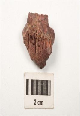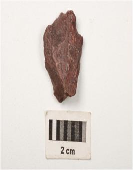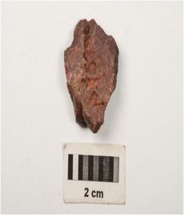 | Description / विवरण | A scraper made on chert, flaks scars on dorsal side, prepared platform, diffused bulb, use wear marks on cutting edges. |