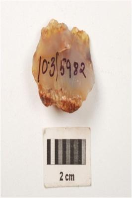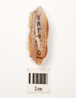 | Description / विवरण | A scraper made on chalcedony, cortex on surface, prepared platform, diffused bulb on ventral side and smooth surface. |