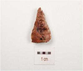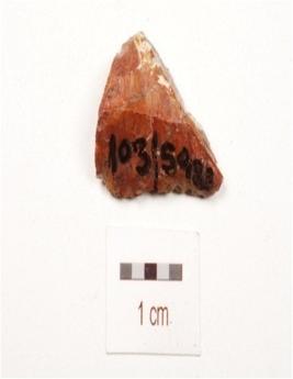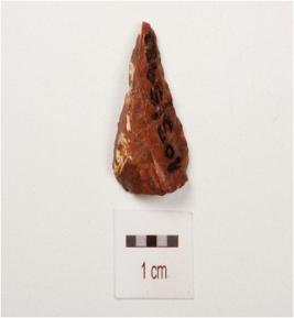 | Description / विवरण | A scraper made on chert with flake scars on dorsal side, use wear marks on cutting edges, diffused bulb on ventral side. |