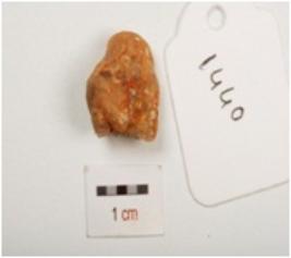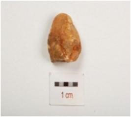 | Description / विवरण | A chalcedony balde with prominent mid ridge on dorsal, prepared platform, triangular cross section and irregular retouched on cutting edge. |