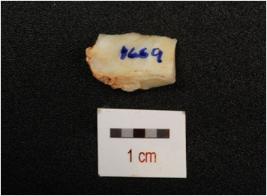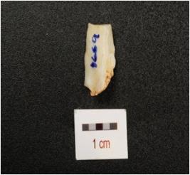 | Description / विवरण | A chalcedony core with four blade scars on surface and prepared platform. |