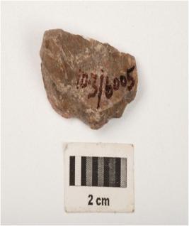 | Description / विवरण | An chert core with four blade scars, prepared platform. |