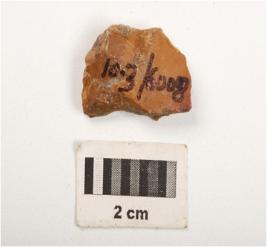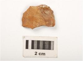 | Description / विवरण | An chert flake with two blade scars, prepared platform, diffused bulb on ventral side, use wear marke along cutting edges. |