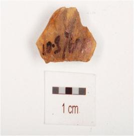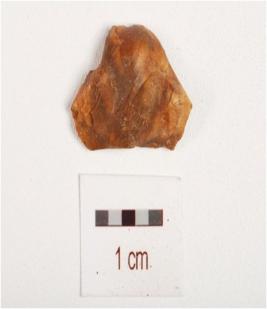 | Description / विवरण | An chert flake with three blade scars, prepared platform, diffused bulb on ventral side. |