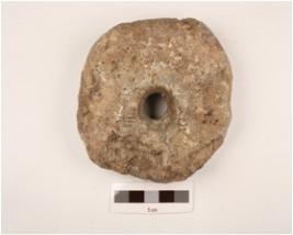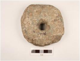 | Description / विवरण | A ring stone made on basalt with hole in the middle, rough surface and partly broken from surface. |