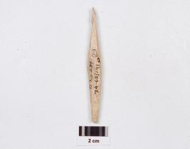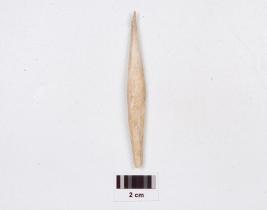 | Description / विवरण | A bone point, faceted surface is polished and smooth, one end is pointed and intact with irregular circular cross section. |