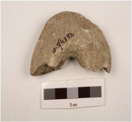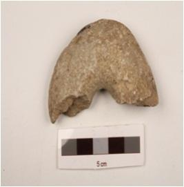 | Description / विवरण | A fragment of mace-head made on basalt, polished surface, traces of perforation and partly broken from surface. |