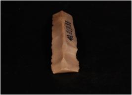 | Description / विवरण | A long parallel sided blade, made on chert stone with flaked marks on dorsal side, a long ridge on the surface. |