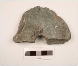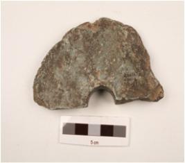 | Description / विवरण | A fragment of mace-head with polished surface, traces of perforation and partly broken from surface. |
