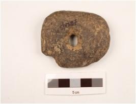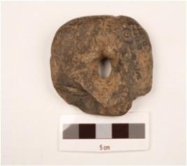 | Description / विवरण | A ring stone made on basalt with polished surface, hole in the middle and partly broken from surface. |