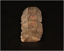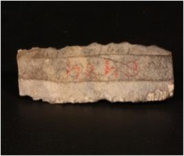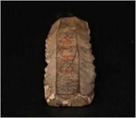 | Description / विवरण | A chert blade with two parallel ridges on the dorsal side. Retouching done on cutting edges, slightly chipped off. |