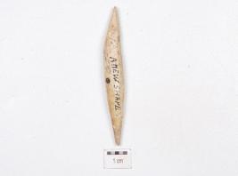 | Description / विवरण | A bone point, faceted surface is smooth and polished, both end is pointed and irregular in cross section. |