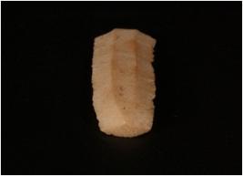 | Description / विवरण | A small blade of chert with two parallel ridges on the dorsal side culminating at one end. Cutting edges intact, proximal end slightly curved. |
