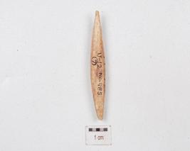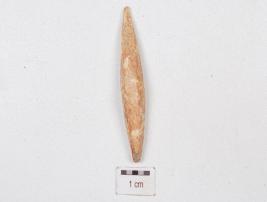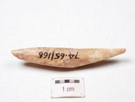 | Description / विवरण | A bone point, faceted surface is smooth and polished, cracks on surface, pointed end and irregular in section. |