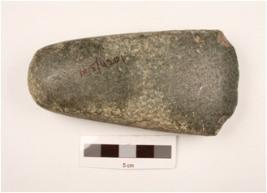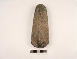 | Description / विवरण | Basalt polished axe with polished surface, rounded butt end, partially rough surface, convex both the sides, broad cutting edge and triangular in shape. |