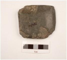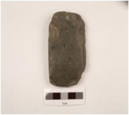 | Description / विवरण | Basalt stone rectangular shaped adze, flat on one surface, other is slightly convex, partly broken surface, convex cutting edge and rectangular butt end. |