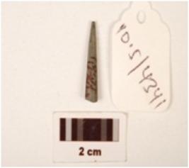 | Description / विवरण | Fragment of a point, circular cross section, one end pointed but another end broken, smooth surface with polished surface. |