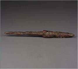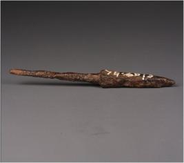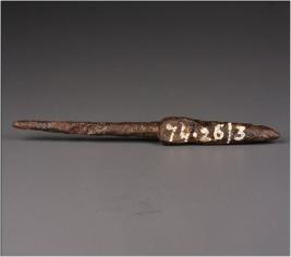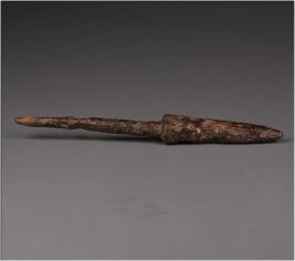 | Description / विवरण | Elongated iron arrowhead with four edges, pointed tip, the object is chemically treated, rough surface. |