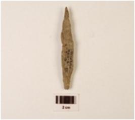 | Description / विवरण | Fragment of a point, one end pointed, another end broken, rough surface and polished surface. |