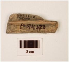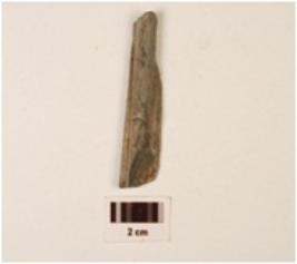| Description / विवरण | Fragment of a arrow head stone, broken at both ends, one groove line on the surface and rough surface with polished surface. |
