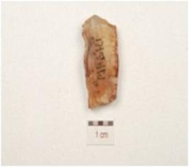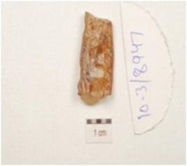 | Description / विवरण | A core made on chalcedony, prepared platform on proximal end and blade scars on one side. |