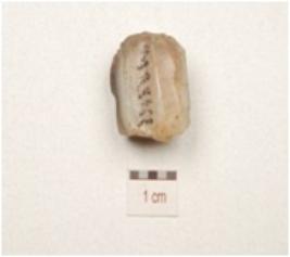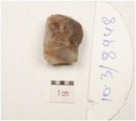 | Description / विवरण | A core made on chalcedony, prepared platform on proximal end and blade scars on the surface. |