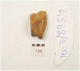 | Description / विवरण | A core made on chalcedony, prepared platform on proximal end and blade scars on one side. |