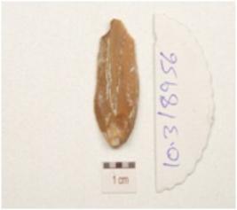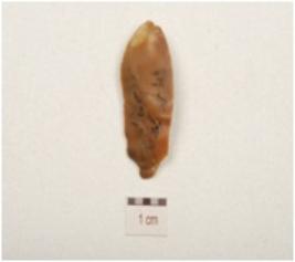 | Description / विवरण | An end struck chert flake, flake scars on one side. |
