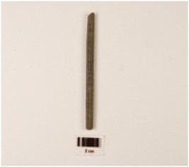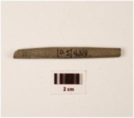 | Description / विवरण | Fragment of a point stone, broken at both ends, plano convex cross section and smooth surface with polish. |