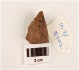 | Description / विवरण | Flake stone tool made by chert, fine blade, present on the surface, prepared platsform proximel end. |