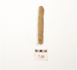 | Description / विवरण | A blade made on chert, prepared platfrom, ridge on a dorsal bulb on a ventral use wear marks along the cutting edges and triangular in section. |