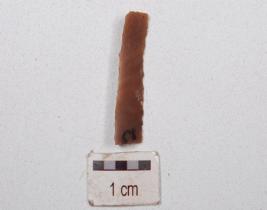 | Description / विवरण | A fragment of blade made on end struck chert flake, ridge on dorsal side and partly retouch cutting edges. |